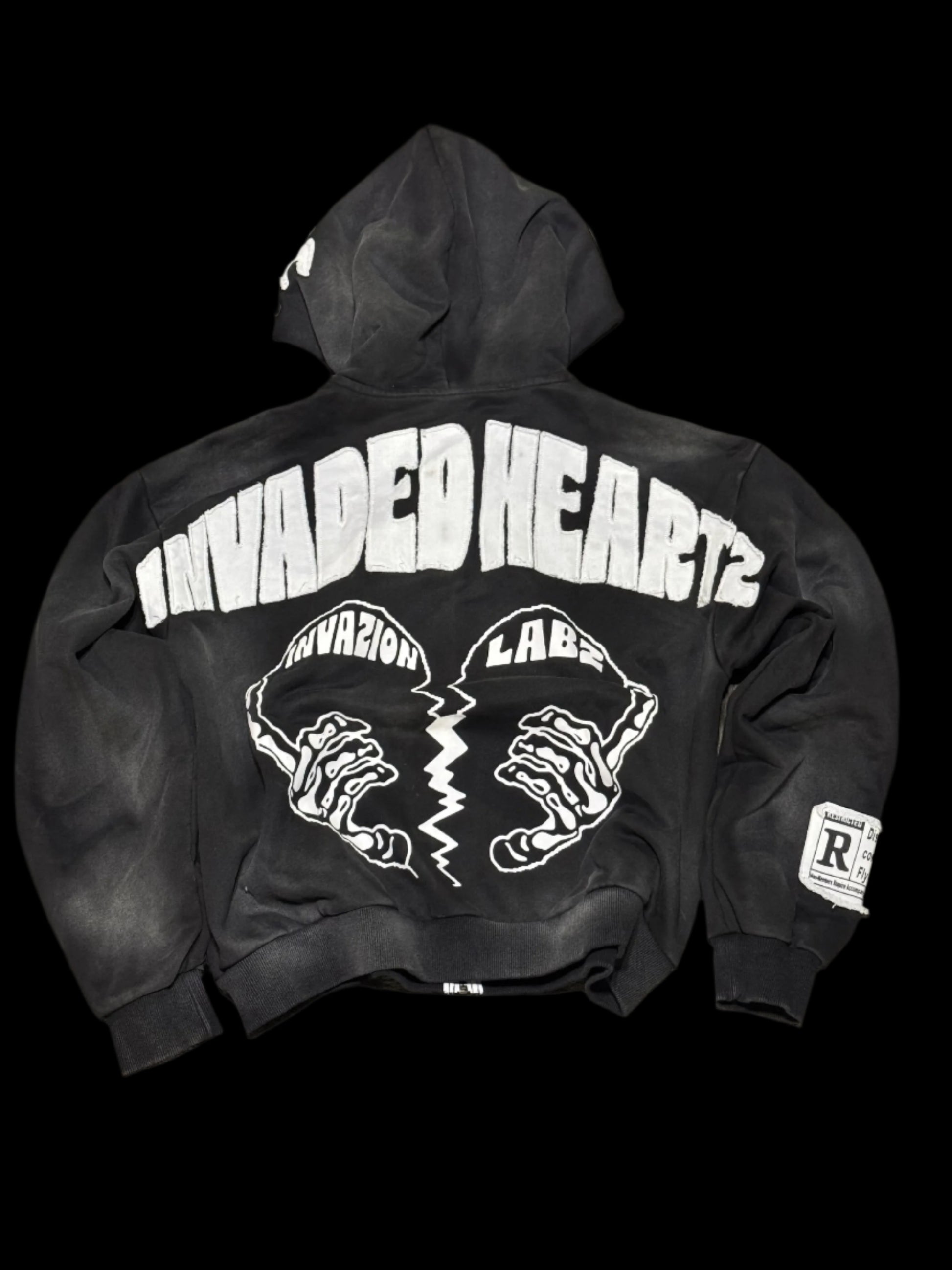 Distressed Embroidery "INVADED HEARTZ" "INVADE"